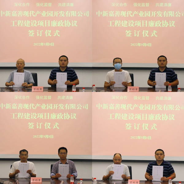 會(huì )議最后,中新嘉善黨支部舉行《工程建設項目廉政協(xié)議》簽訂儀式,通過(guò)讓項目經(jīng)理與各合作單位項目管理代表簽訂廉政協(xié)議的方式,強化壓力傳導、督促履職盡責,切實(shí)加強對工程實(shí)施環(huán)節的監督管理,夯實(shí)項目工地“清廉”之基,砌筑“權責”之瓦,努力構建“親”“清”合作關(guān)系,攜手實(shí)現“工程優(yōu)質(zhì)、團隊優(yōu)秀”的目標,力爭將中新大道東等一批基礎設施建設項目打造成為長(cháng)三角一體化示范區更高質(zhì)量發(fā)展的嘉善樣板工程。