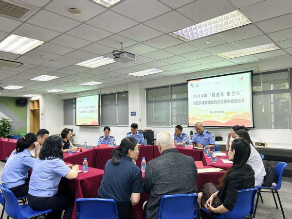 會(huì )上,中新教育黨支部書(shū)記田雪鸰致歡迎詞,她表示“法制安全、信息安全和意識形態(tài)安全都是國際學(xué)校高度關(guān)注的關(guān)鍵領(lǐng)域和重要點(diǎn)位,希望通過(guò)黨建結對共建的形式,與各領(lǐng)導部門(mén)深入交流合作,以黨建促業(yè)務(wù),聚合力強法治”。隨后,總校長(cháng)談及國際學(xué)校近幾年法治安全工作,與會(huì )各方在學(xué)校安全教育、法律意識培養等方面交換意見(jiàn)。