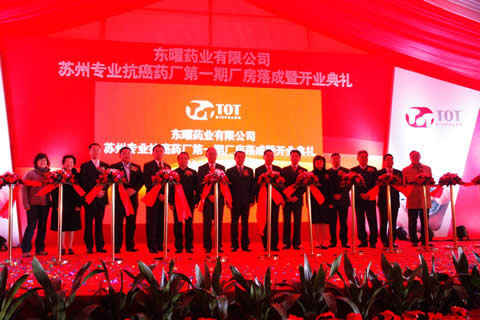 2012年11月23日,東曜藥業(yè)有限公司(TOT Biopharm Company Limite)在蘇州工業(yè)園區舉行專(zhuān)業(yè)抗癌藥廠(chǎng)第一期廠(chǎng)房落成暨開(kāi)業(yè)盛典,臺灣國泰世華銀行文化慈善基金會(huì )董事長(cháng)錢(qián)復先生、?;鶗?huì )副董事長(cháng)高孔廉先生和兩岸各界貴賓出席,共同見(jiàn)證了這個(gè)兩岸生物醫藥產(chǎn)業(yè)合作發(fā)展的又一里程碑。