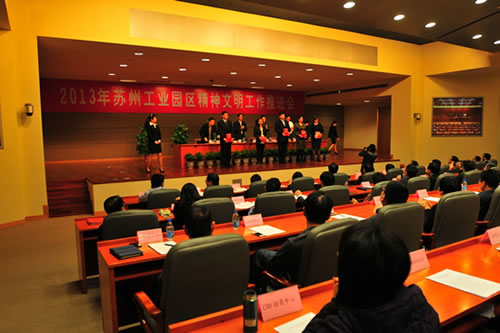 2013年3月9日,蘇州工業(yè)園區召開(kāi)精神文明工作推進(jìn)大會(huì )。會(huì )上,中新公用相關(guān)公益品牌活動(dòng)獲蘇州工業(yè)園區首屆十大新事、宣傳創(chuàng )新獎及優(yōu)秀品牌活動(dòng)等三個(gè)獎項,成為園區獲獎最多的企業(yè)。蘇州市委常委、園區工委書(shū)記王翔,園區管委會(huì )主任楊知評等領(lǐng)導為獲獎單位和個(gè)人頒發(fā)獲獎證書(shū)。