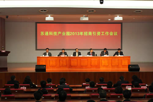 隨后,園區在研發(fā)中心1號樓報告廳召開(kāi)了2013年蘇通科技產(chǎn)業(yè)園招商引資工作會(huì )議。會(huì )議由陳本高主任主持,屈寶賢書(shū)記、李銘衛副主任、周少華副主任、陳如海副主任以及我公司彭彬總裁在主席臺就座。