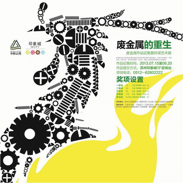 本活動(dòng)由中新蘇州工業(yè)園區市政公用發(fā)展集團有限公司(簡(jiǎn)稱(chēng)“中新公用”)聯(lián)手蘇州印象城推出,活動(dòng)包括廢金屬作品征集、環(huán)保課堂教學(xué)、作品展出等組成。