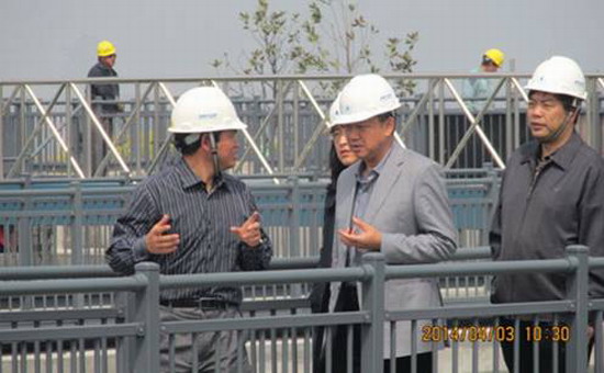 2014年4月3日上午,蘇州工業(yè)園區管委會(huì )副主任秦筱靖率園區規劃建設局、環(huán)境保護局、中新公用集團主要領(lǐng)導調研蘇州工業(yè)園區陽(yáng)澄湖水廠(chǎng)一期工程(暨園區第二水源工程),聽(tīng)取了項目進(jìn)展匯報,現場(chǎng)考察取水口并檢查了水廠(chǎng)試運行情況。要求蘇州工業(yè)園區清源華衍水務(wù)有限公司嚴格把好各環(huán)節質(zhì)量關(guān),認真做好收尾工作,確保5月份園區形成“雙水源、雙水廠(chǎng)”的供水格局,為建區20周年獻禮。