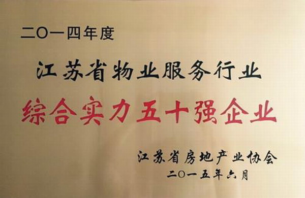 [中新置地]中新和喬物業(yè)榮獲江蘇省物業(yè)50強企業(yè)稱(chēng)號