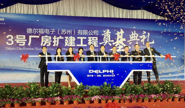 5月23日,德?tīng)柛k娮犹K州有限公司擴建項目奠基儀式今天隆重舉行,項目投資3200萬(wàn)美元,建成后蘇州公司將成為集團內部最大的集主動(dòng)安全、新能源、娛樂(lè )系統及動(dòng)力總成于一體的研發(fā)生產(chǎn)基地,蘇州公司年銷(xiāo)售從6億美元上漲到10億美元。市委常委園區黨工委書(shū)記徐惠民、副主任孫燕燕等領(lǐng)導嘉賓參加此次活動(dòng)。
