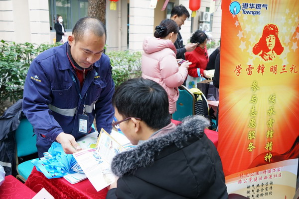 在3月5日全國第56個(gè)學(xué)雷鋒日前后,蘇州港華黨員及社區大使就大顯身手,大家以社區活動(dòng)為載體,發(fā)揚義工隊惠澤社群的公益精神,積極參加學(xué)雷鋒志愿活動(dòng)。3月1日和2日,社區大使蔡寧、唐玉飛分別來(lái)到新加社區和貴都社區,為空巢老人家庭免費更換灶具軟管。3月3日,在由園區團工委、東沙湖社區黨工委聯(lián)合舉辦的“360°公益街”便民服務(wù)活動(dòng)中,社區大使周石磊和李尋在現場(chǎng)發(fā)放宣傳單頁(yè),解答用氣問(wèn)題,預約上門(mén)服務(wù),為居民提供便民服務(wù)。