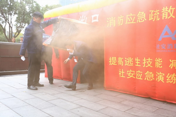 本次演練模擬中新大廈高層辦公區發(fā)生火災,火勢較大無(wú)法撲滅,現場(chǎng)人員立即進(jìn)行事故上報,同時(shí)按響消防手動(dòng)報警按鈕,大廈物業(yè)立即組織救援,辦公區員工聽(tīng)到消防警報后從消防通道疏散至中新大廈避難層。疏散演練結束后還開(kāi)展了逃生屋體驗及滅火器使用教學(xué),加強火災安全意識和應急能力。