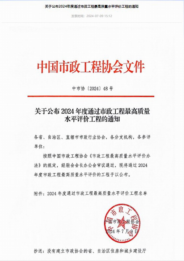 由中國市政工程協(xié)會(huì )組織實(shí)施,每年度評選一次,是中國市政工程行業(yè)在工程質(zhì)量方面的最高水平評價(jià),代表中國市政工程行業(yè)同時(shí)期國內先進(jìn)水平。