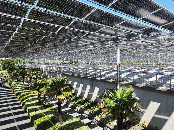 污水處理廠(chǎng)水池跨徑大、管線(xiàn)多、障礙物高,一直是光伏行業(yè)的建設難題。經(jīng)過(guò)周密調研、科學(xué)創(chuàng )新,采用“鋼結構+預應力鋼索”的新型支架形式,以模塊化架空安裝有效解決了技術(shù)與成本的兼容,保障電站穩定、可靠運營(yíng),同時(shí)不占用土地資源,不影響污水處理,并兼顧綠化植物生?,實(shí)現空間資源利用最大化。憑借獨特的應用場(chǎng)景和創(chuàng )新的解決方案,項目獲評2024第三屆中國(江蘇)新能源+儲能產(chǎn)業(yè)發(fā)展大會(huì )最佳新能源應用案例獎。