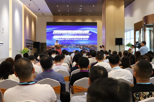 7月26日,中新嘉善產(chǎn)業(yè)園專(zhuān)場(chǎng)招商推介會(huì )成功舉辦。嘉善縣委副書(shū)記、縣長(cháng)張錫鋒出席活動(dòng)并致辭。會(huì )上,中新嘉善現代產(chǎn)業(yè)園做了全面的招商推介,并就產(chǎn)業(yè)園未來(lái)發(fā)展規劃和潛在合作機會(huì )與參會(huì )企業(yè)代表進(jìn)行深入交流,圍繞產(chǎn)業(yè)項目,尋求合作契機,推動(dòng)吸引、支持更多好項目在中新嘉善現代產(chǎn)業(yè)園落地生根。目前通過(guò)已落戶(hù)大項目“以商引商”,已吸引多個(gè)優(yōu)質(zhì)項目投資落戶(hù)產(chǎn)業(yè)園,充分發(fā)揮出產(chǎn)業(yè)集聚的帶動(dòng)和輻射效應。