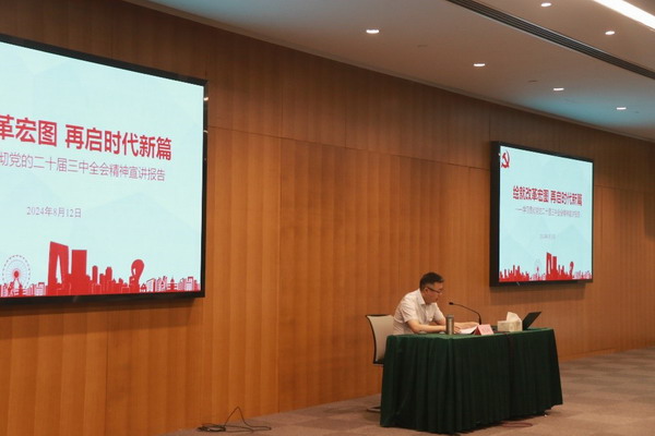 8月12日上午,根據蘇州工業(yè)園區黨工委統一部署,中新集團召開(kāi)學(xué)習貫徹黨的二十屆三中全會(huì )精神宣講報告會(huì )。園區黨工委宣講團成員、中新集團黨委書(shū)記、董事長(cháng)、總裁趙志松以“繪就改革宏圖 再啟時(shí)代新篇”為主題作二十屆三中全會(huì )精神宣講。中新集團黨委班子成員、本部副處級及以上人員,各一級子公司班子成員,黨支部黨員代表等100余人參加了此次會(huì )議。