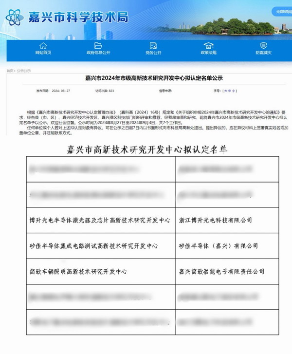 近日,2024年嘉興市高新技術(shù)研究開(kāi)發(fā)中心名單發(fā)布。